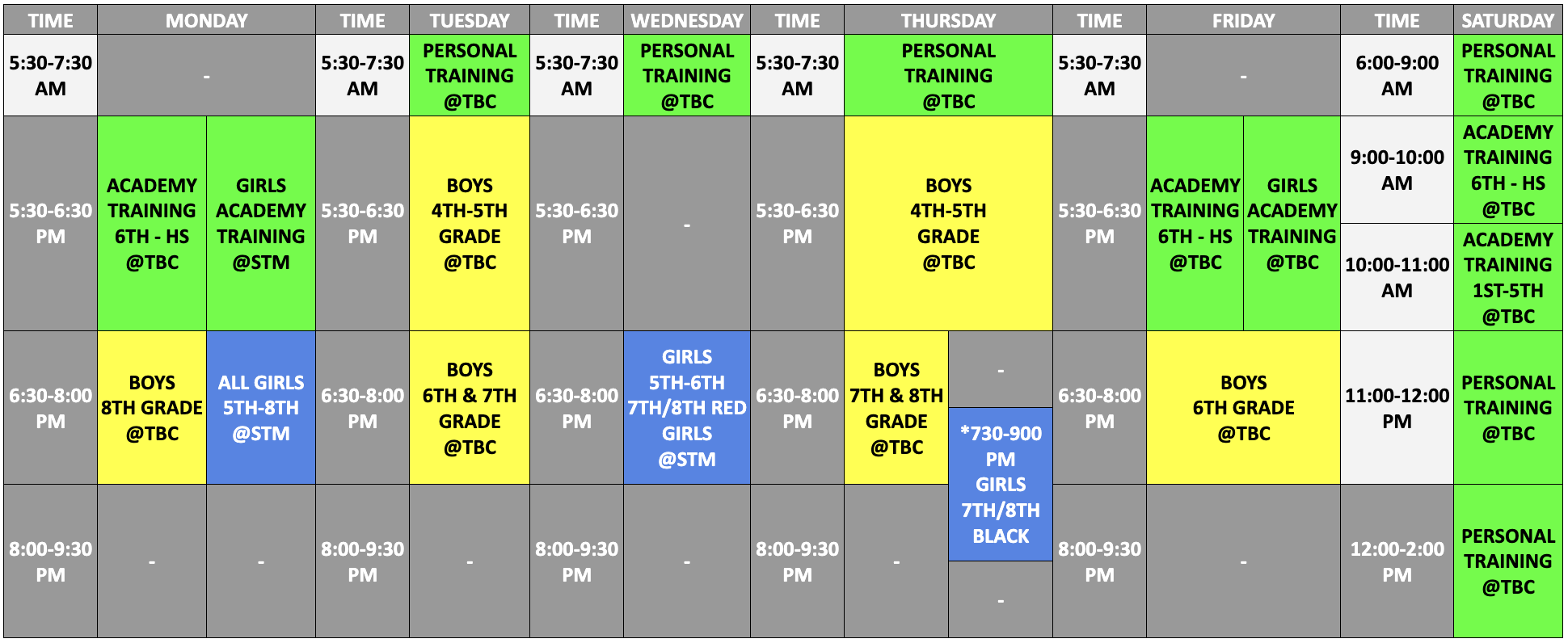 *Please send an email to [email protected] with any scheduling questions regarding Basketball Team Practice sessions, Personal or Group Skills Training sessions, or Shooting Machine Rentals.